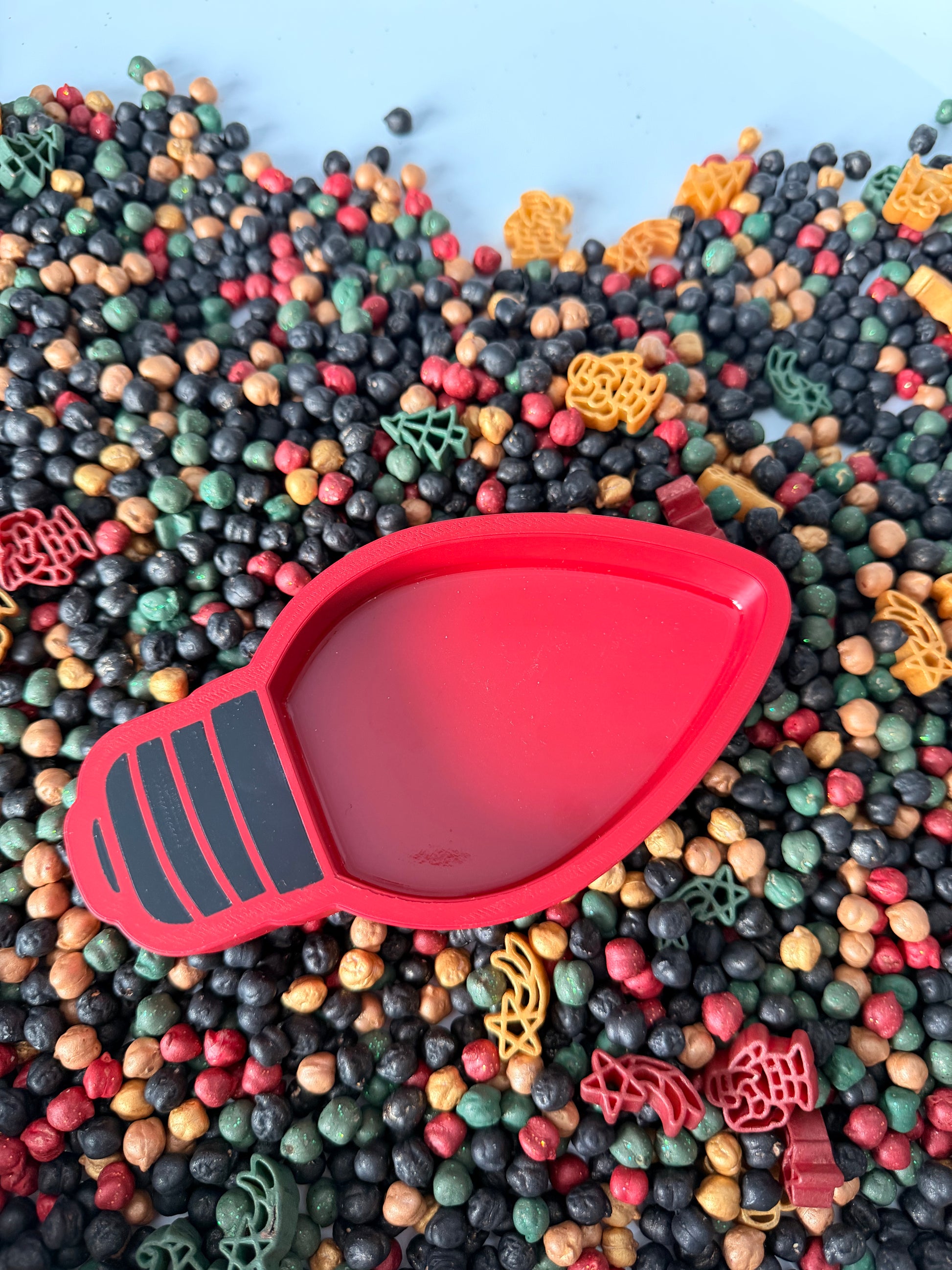 These light bulb trays are a bright and beautiful addition to your Christmas sensory bin collection! Each bulb is finished with resin on the inside to give it that extra shine