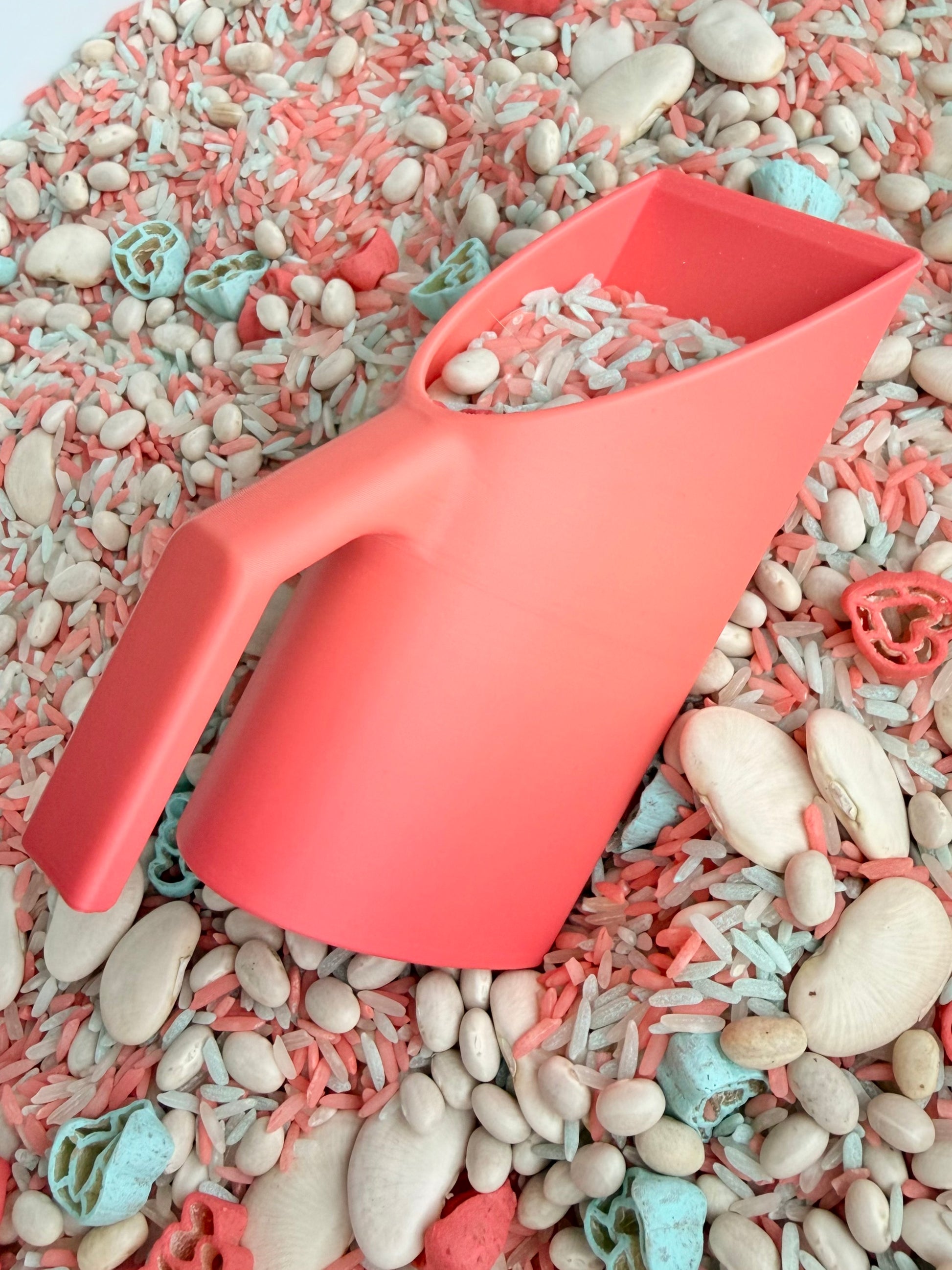 Designed with both function and play in mind, this scoop jug features a large, open compartment and an easy-grip handle, making it perfect for confident scooping and satisfying pouring during sensory play. Its generous capacity allows for little hands to gather, carry, and transfer fillers like rice, beans, and pasta with ease.